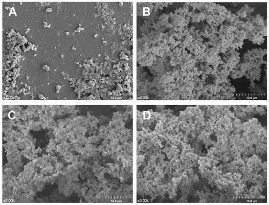 Representative FE-SEM images of all experimental groups are shown in Figure 4. Abundant deposition of precipitates with multiple aggregates were observed on the surfaces of the BAG-containing groups (Figure 4B–D), whereas few precipitates were observed on the surface of the SNP group (Figure 4A).