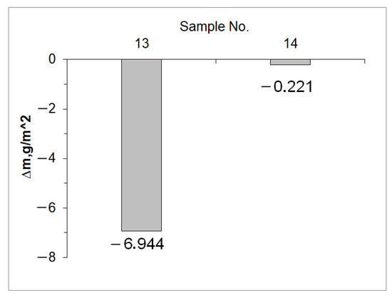 Change in sample weight next after annealing (g/m2).