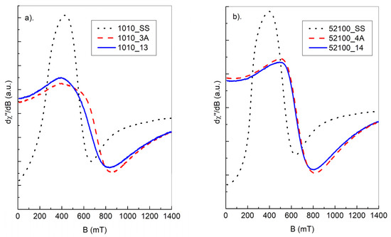 Although the above temperature dependences are obtained only in the 80–300 K ranges, our previous investigations in the 3–300 K range, concerning the same samples tested for something different thermodynamical conditions, confirmed the above conclusions [16]. Comparison of the FMR spectra of balls subjected to different heat treatments is shown in Figure 7a,b. As shown, thermal processes lead to a more symmetric FMR resonance line, indicating the increasing homogeneity of responsible magnetic centers.