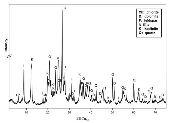 The mineral composition of sample RM is dominated by quartz, kaolinite, and illite. They are accompanied by dolomite, chlorite, and feldspar.