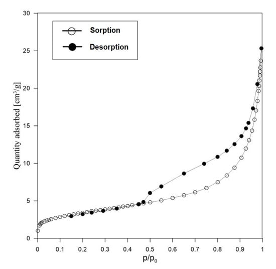 Figure 7 shows the sorption/desorption isotherm obtained for sample RM after calcination.