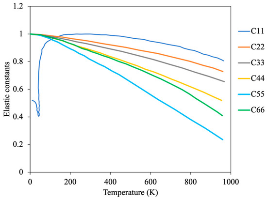 Temperature dependent elastic constants of α-U (Reprinted/adapted with permission from Ref. [23], 2022, Elsevier).
