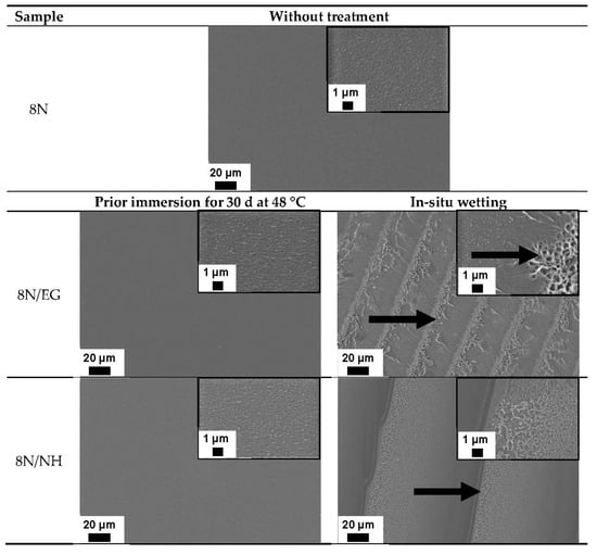 Comparisons of the fracture surfaces of the 8N samples after immersion and in situ wetting via SEM images of the region II (see Figure 3).