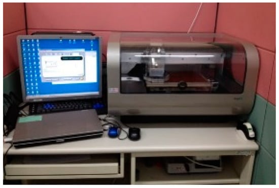 The silver nanoparticles ink jet printing process is selected in this study since it is efficient, simple, and inexpensive for printing the patterns on flexible materials such as PI film. Besides, during the printing process no chemical waste is generated, and thus no post-processing costs are required. The silver particle agglomeration can be improved by using dispersants, surfactants, and polymers in order to have a jetting of high quality. The patterns are fabricated by inkjet printing technique using Fujifilm Dimatix printer (DMP 2850) shown in Figure 6. The printer uses piezoelectric inkjet technology which allows depositing fluids materials on substrate. The silver nanoparticle ink is required to be sonicated around 15 min to avoid the agglomerate between the particles. The fluid (~3 mL) is then placed into the cartridge with a syringe, a needle and 0.2 m filter. The filter is used to filter out the particles that are bigger than 0.2 m to prevent the nozzle head clog.
