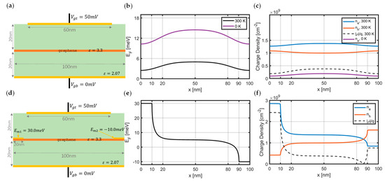 - Liu, M.-H. Gate-induced carrier density modulation in bulk graphene: Theories and electrostatic simulation using Matlab pdetool. J. Comput. Electron. 2013, 12, 188–202. [Google Scholar] [CrossRef]