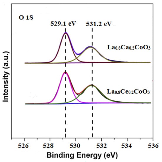 X-ray photoelectron of the O 1 s for La0.8Ca0.2CoO3 and La0.8Ce0.2CoO3.