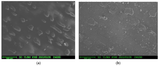 Surface SEM morphologies of the substrate with a Shore A hardness of 95: (a) without and (b) with Parylene C coating.