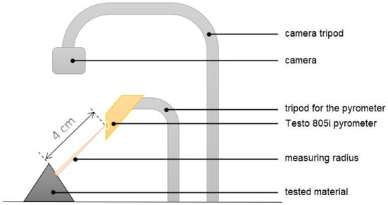Non-contact measurement of temperature change during cutting-measuring system. A Testo 805i pyrometer (Pruszków, Poland) measured the temperature. Constant room temperature 21.6 °C, air-conditioned room. At a distance of 4 cm, the value of the temperature reading averaged over the area of 0.4 cm diameter area.