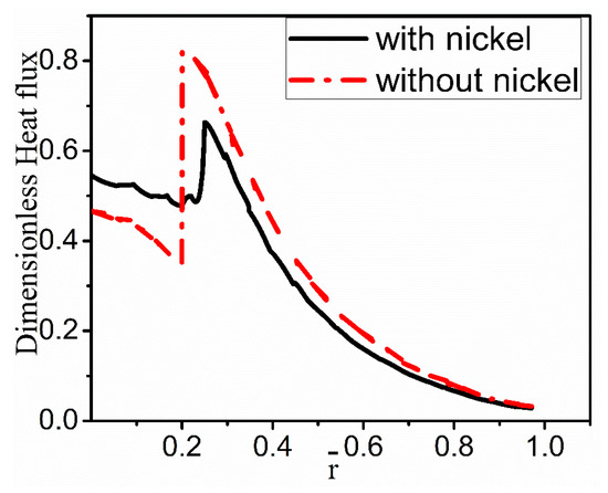 Dimensionless heat flux with and without nickel coating at = 0.1.