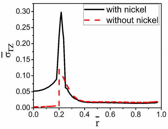 Radial changes in von Mises stress with and without nickel coating = 0.1.
