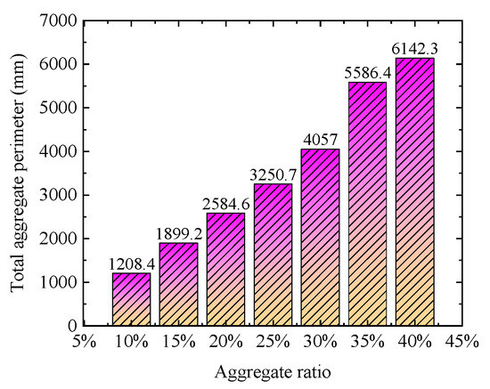 The total perimeter of the coarse aggregate for different aggregate ratios.