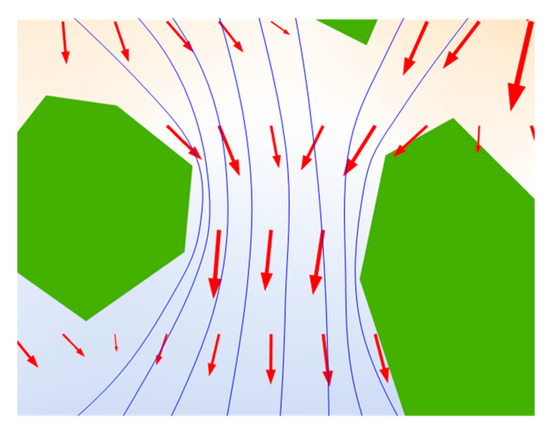 Moreover, by comparing the chloride diffusion paths, coarse aggregate not only hinders the chloride diffusion, but also has an agglomeration effect on chloride distribution. Figure 9 shows an enlarged view of the local chloride ion diffusion path for 30% of the coarse aggregate. As well, the agglomeration of coarse aggregate increases the chloride ion concentration in the cement mortar.