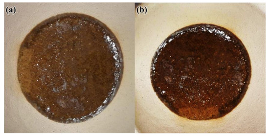 Heated thin (a) FAS geopolymer and (b) FAB geopolymer at temperature above 1100 °C and 1000 °C, respectively.