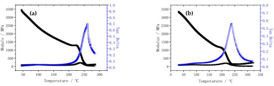 Dynamic thermomechanical analysis (DMTA) of BMI (a) and BMI–BT5501A (b).