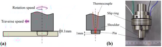 (a) Schematic view of noncontact shoulder FSW; (b) used FSW tool with thermocouple position [44].