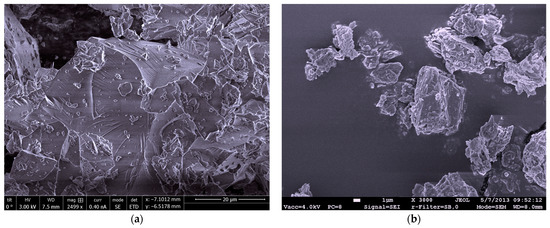 SEM images of binder particles: (a) glass powder (b) natural zeolite (clinoptilolite).