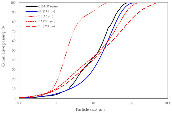 Cumulative passing chart of binder particle size.