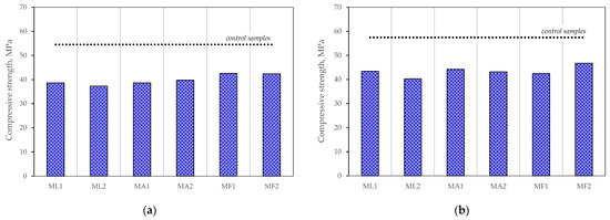Therefore, it can increase the workability of the mix, which is confirmed by other authors [38]. It should be noted that there is a relationship between particle size and the amount of glass powder. Authors report [39] that the slump flow did not decrease in the mix containing up to 20% of glass powder with an average particle size of 45 μm. However, the workability may decrease when the glass particles are smaller than 10 μm.