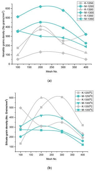 Effect of Mesh no. on Phase Grain density of (a) Hematite (b) Silicate.