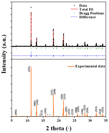 - Rodríguez-Carvajal, J.; Roisnel, T. FullProf.98 and WinPLOTR New Windows Applications for Diffraction. Commission on Powder Diffraction. IUCr, Newsletter 20, May–August, 1998.