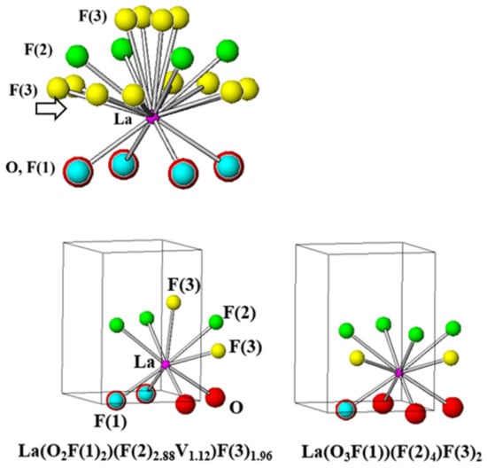 - Laval, J.-P.; Abaouz, A.; Frit, B. High resolution powder neutron diffraction study of the tetragonal anion-excess fluorite-related LaF1.70O0.65 phase. Eur. J. Solid State Inorg. Chem. 1988, 25, 425–434. [Google Scholar] [CrossRef]