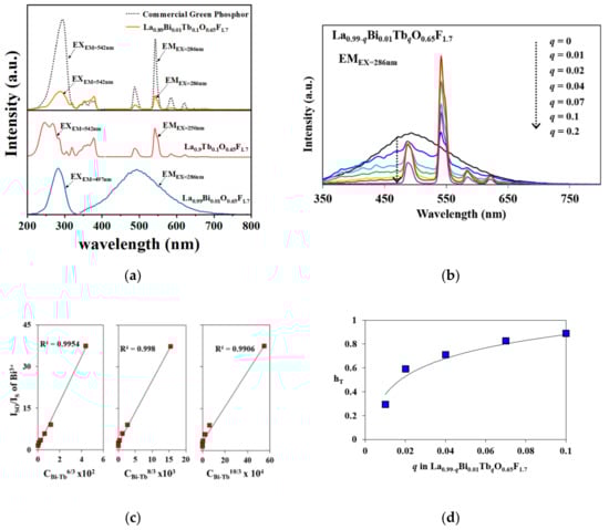 Yang, S.; Shin, S.; Ha, H.; Park, S. Nonstoichiometric LaO0.65F1.7 Structure and Its Green Luminescence Property Doped with Bi3+ and Tb3+ Ions for Applying White UV LEDs. Materials 2022, 15, 4222. https://doi.org/10.3390/ma15124222