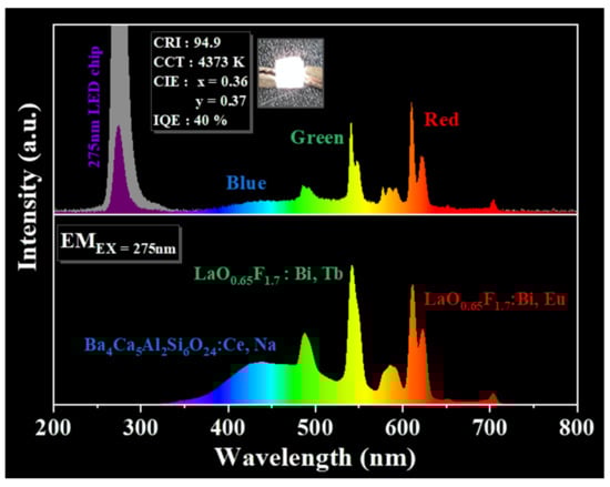 APA StyleYang, S., Shin, S., Ha, H., & Park, S. (2022). Nonstoichiometric LaO0.65F1.7 Structure and Its Green Luminescence Property Doped with Bi3+ and Tb3+ Ions for Applying White UV LEDs. Materials, 15(12), 4222. https://doi.org/10.3390/ma15124222