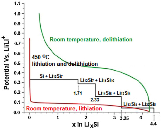 Si lithiation/delithiation curves at room temperature and 450 °C [69]. Reprinted with permission from Ref. [69]. Copyright 2012, Nano Today.