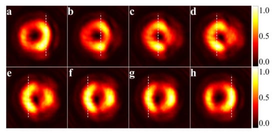- Yin, C.; Kan, F.X.; Dai, L.H.; Shan, M.L.; Han, Q.B.; Cao, Z.Q. Propagation dynamics of off-axis noncanonical vortices in a collimated Gaussian beam. Chin. Phys. B 2019, 28, 034205. [Google Scholar] [CrossRef]