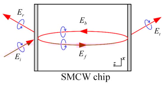 In Figure 5, the incidence, reflection and transmission are labeled as and , respectively. The SMCW structure is simplified as a Fabry-Perot cavity, and the mode inside the guiding layer is decomposed into a forward component and a backward component . Above all, these two components carry opposite topological charge, thus the phase-match condition for the vortex beam can be approximated as
