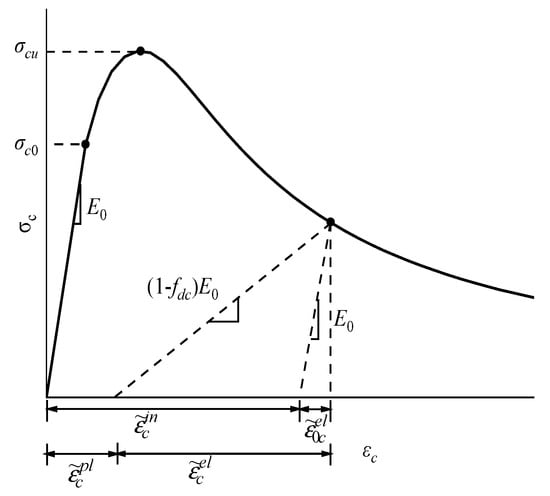 where E0 is the elastic modulus of the concrete in the elastic stage taken in ABAQUS, which can be calculated by Formula (37), according to the specification [].
