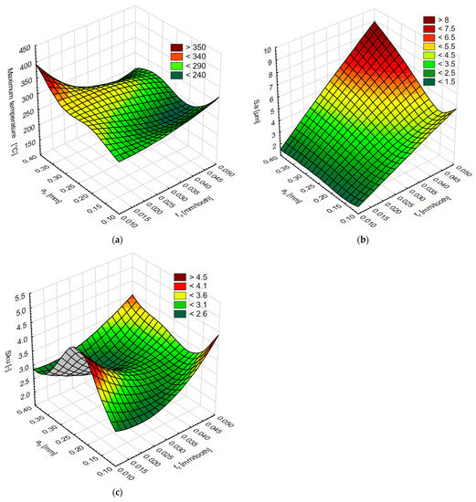 In order to determine whether each of the input technological parameters affects the maximum temperature and the Sa/Sku parameters, a sensitivity analysis was performed (Table 10). None of the analysed technological parameters obtained a sensitivity analysis value below 1, which means that each of them had a significant impact. The parameter that had the most significant influence on the maximum temperature and the Sa and Sku parameters is feed per tooth.