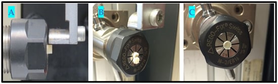 The samples were tested for shear bond strength, adopting the “ISO 29022:2013” standard. The (Zwicki Z5.0, Zwick Roell Group, Ulm, Germany) 200-Newton load cell HP, 3~4-millimeter diameter clamping device was used with an x-y axis moveable table and Alu t-slot plate. The preload used for testing was 0.1 N, and the test speed was 1 mm/min.