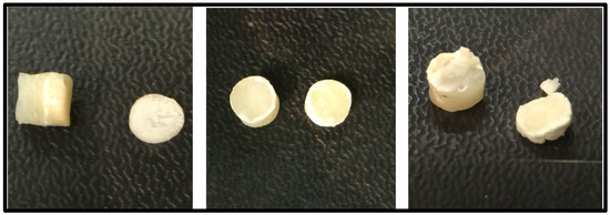 The damaged samples, such as those having cracks or air bubbles, were not included. The samples which were not completely cured were also excluded.