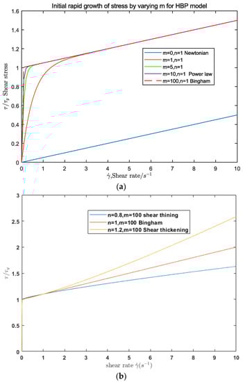 In rheology, the standard Bingham model [25] is usually expressed as a mathematical model, as in Equation (6):