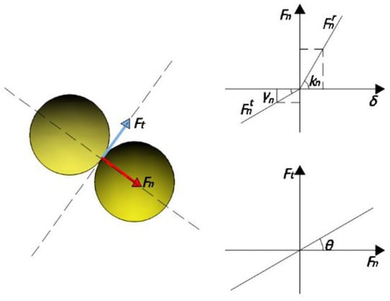 where is the particle radius, represents the modulus of elasticity of the material, and is the Poisson’s ratio of the material. The tangential force is calculated using a similar method of normal force, as shown in Equations (13) and (14):