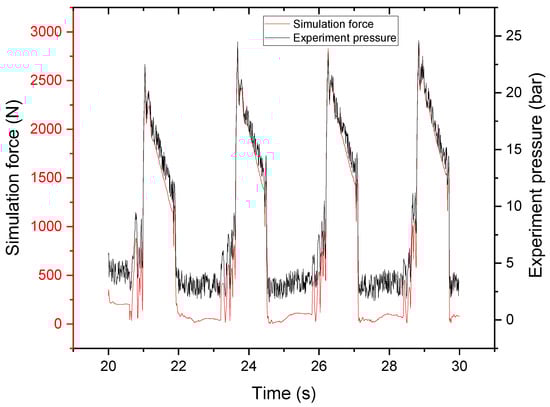 To offer a thorough depiction of the pumping process, the concrete simulation analysis model, which is a comparison of the experimental data, first had to be calibrated. The parameters of the simulation model were defined based on the experimental results listed in Table 4.