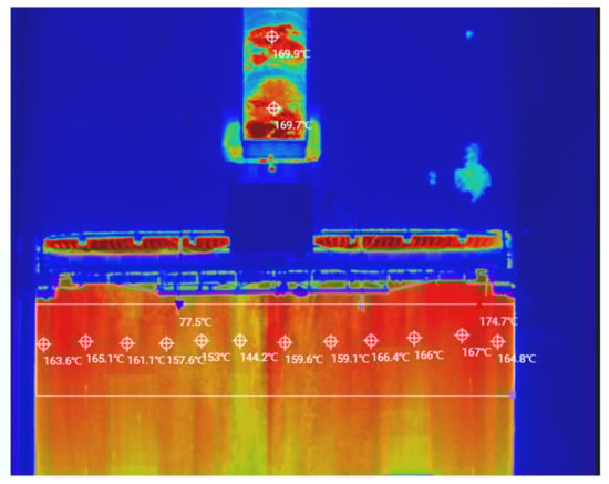 Before testing, it was necessary to set the instrument parameters according to the site environment, including the ambient temperature, ambient humidity, emissivity, and measurement height [21]. The temperature at the site was 17 °C, the relative humidity was 58%, and the emissivity of each object is shown in Table 1. The parameters were imported into DJI Thermal Analysis Tool software, where the images showed the temperature data for the desired location.