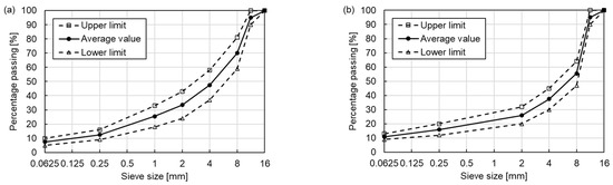Gradation curves of (a) AC 11 and (b) SMA 11.