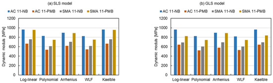 - The master curves constructed according to all the models and all shifting techniques were characterized by better goodness-of-fit for the asphalt mixtures containing NB than the ones comprised of PMB due to the effect of PMB structure on the dynamic modulus of the asphalt mixture. The modelling of dynamic modulus master curves for SMA mixtures has a better fit than the one for SMA mixtures because of the influence of more particle angularity on the dynamic modulus of the asphalt mixture. Therefore, the models can be developed further to be suitable for the asphalt mixtures containing the PMB and SMA types of asphalt mixtures.