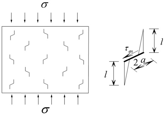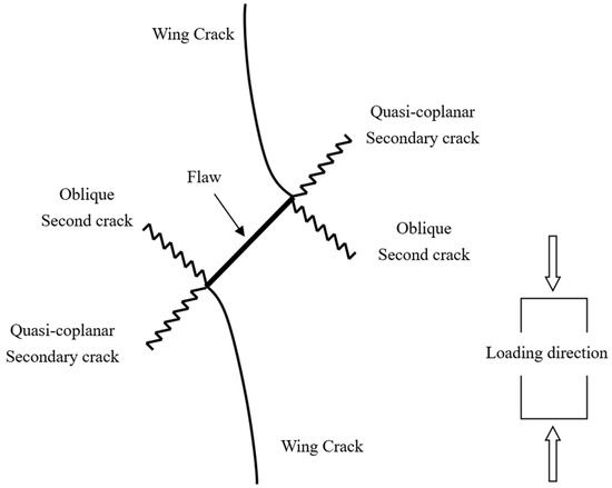 It has been shown that wing cracks expand approximately in a direction parallel to the maximum principal stress under the action of external forces [29,30], as shown in Figure 16.
