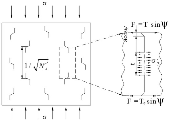 Assuming the number of the cracks per unit area is NA in Figure 18, the distance between the cracks S and the rock bridge length between the wing cracks T is given as follows: