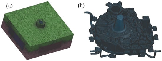 Diagrams of the mold and casting after mesh division: (a) mold; (b) casting.