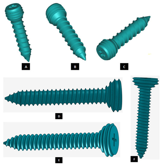 Custom-designed screws with locking mechanism. The threads on the screw-head surface provide improved/optimal fixation by firmly engaging in the matching threads in the screws holes of either condylar/ramal or fossa component of the total TMJ prosthesis (A–F).