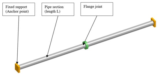 The object of this research is the flange joint that connects two parts of a pipeline. The pipeline is supported by two fixed supports located at the ends (Figure 1).