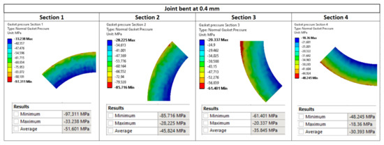 Pressure distribution in the characteristic zones of the gasket—0.4 mm deflection.