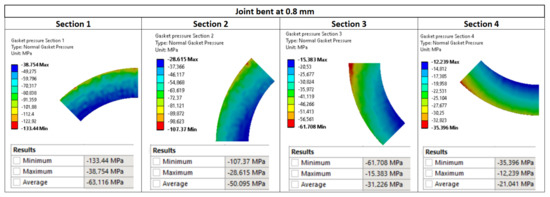 Pressure distribution in the characteristic zones of the gasket—0.8 mm deflection.