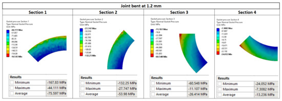 Pressure distribution in the characteristic zones of the gasket—1.2 mm deflection.