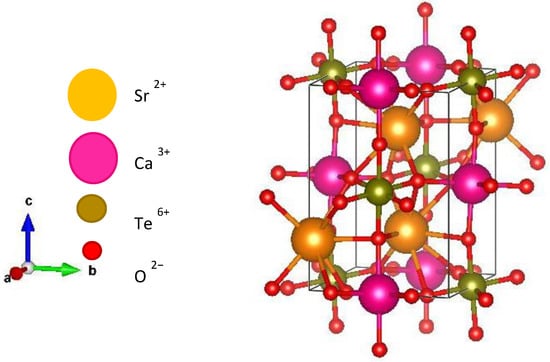 - Tamraoui, Y.; Manoun, B.; Mirinioui, F.; Saadoune, I.; Haloui, R.; Elhachmi, A.; Saad, E.; Lazor, P. Temperature and composition induced phase transitions in Sr2−xCa1+xTeO6 (0 ≤ x ≤ 2) double perovskite oxides. J. Mol. Struct. 2017, 1131, 103–113. [Google Scholar] [CrossRef]