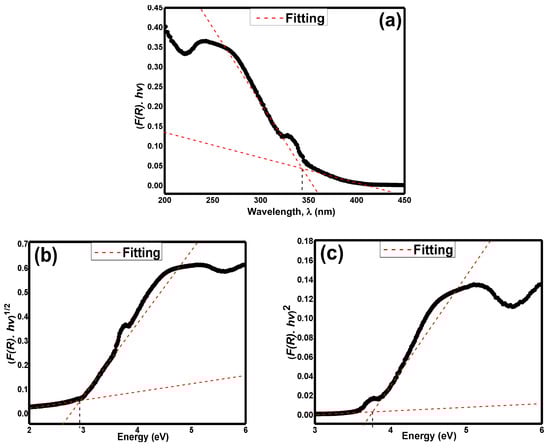 where R = diffuse reflectance of compounds. Figure 9b,c shows the Tauc plots that utilised Equation (17):